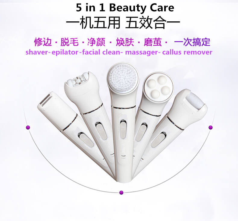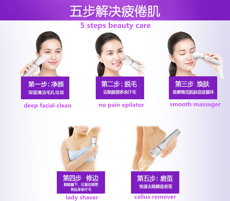 五合一家用美容仪 洗脸 按摩 去皮 剃毛 磨茧